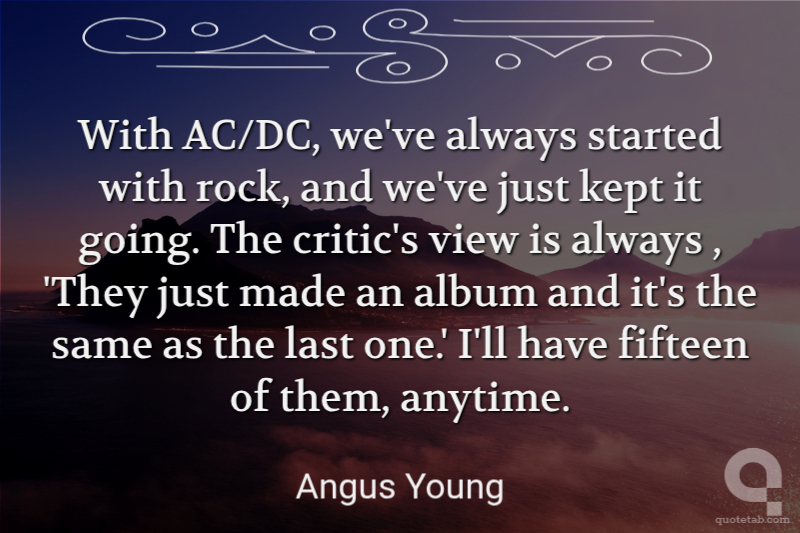 With AC/DC, we've always started with rock, and we've just kept it going. The critic's view is always , 'They just made an album and it's the same as the last one.' I'll have fifteen of them, anytime.