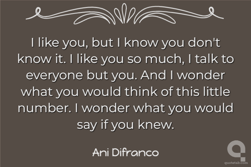 I like you, but I know you don't know it. I like you so much, I talk to everyone but you. And I wonder what you would think of this little number. I wonder what you would say if you knew.