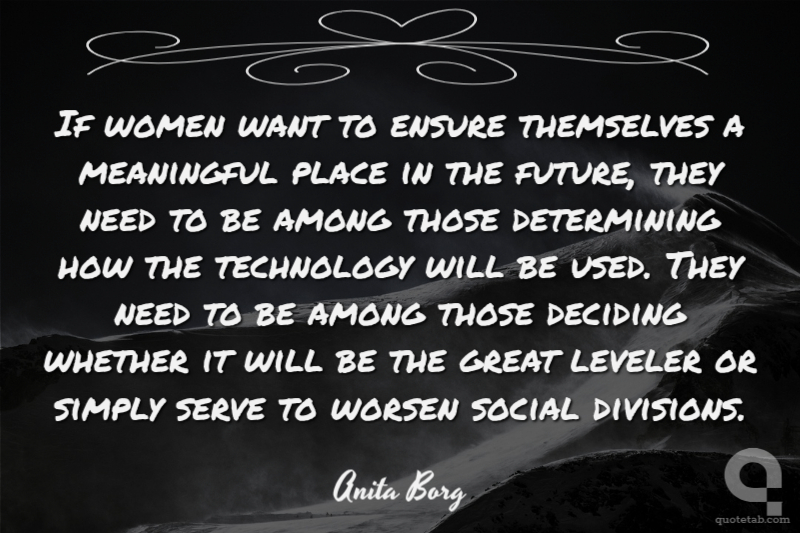 If women want to ensure themselves a meaningful place in the future, they need to be among those determining how the technology will be used. They need to be among those deciding whether it will be the great leveler or simply serve to worsen social divisions.