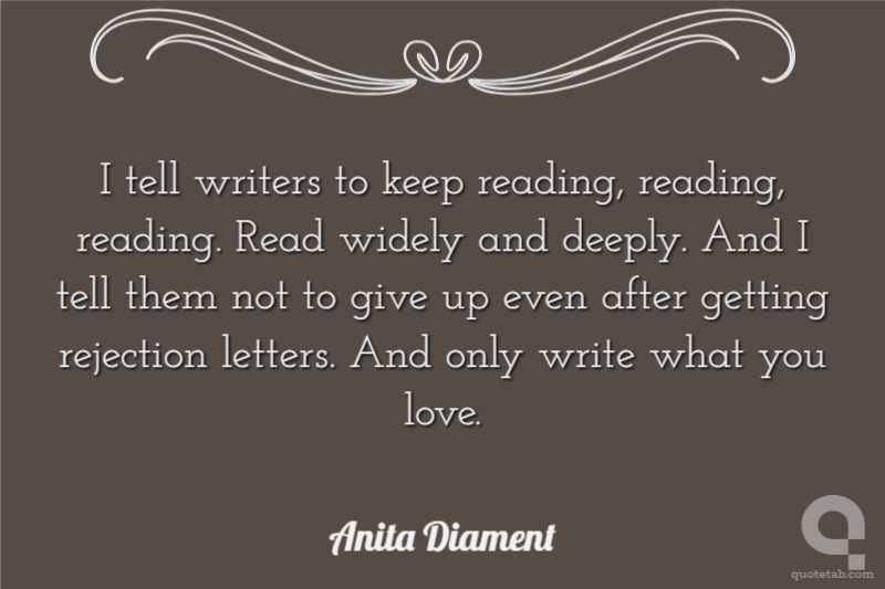 I tell writers to keep reading, reading, reading. Read widely and deeply. And I tell them not to give up even after getting rejection letters. And only write what you love.