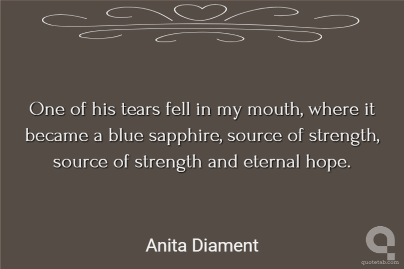 One of his tears fell in my mouth, where it became a blue sapphire, source of strength, source of strength and eternal hope.