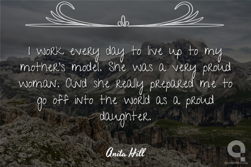 I work every day to live up to my mother's model. She was a very proud woman. And she really prepared me to go off into the world as a proud daughter.