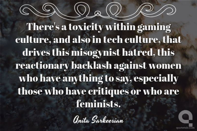 There's a toxicity within gaming culture, and also in tech culture, that drives this misogynist hatred, this reactionary backlash against women who have anything to say, especially those who have critiques or who are feminists.