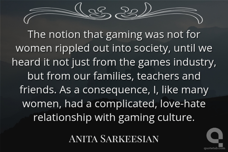 The notion that gaming was not for women rippled out into society, until we heard it not just from the games industry, but from our families, teachers and friends. As a consequence, I, like many women, had a complicated, love-hate relationship with gaming culture.