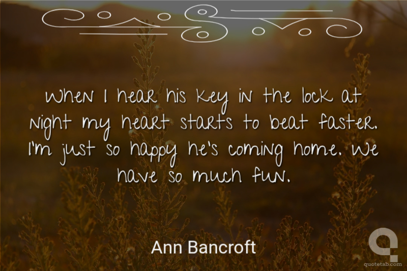 When I hear his key in the lock at night my heart starts to beat faster. I'm just so happy he's coming home. We have so much fun.