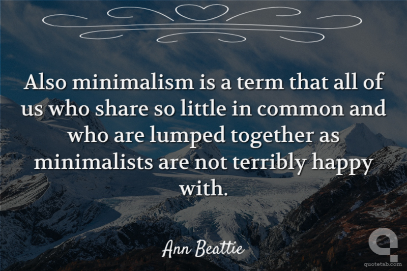 Also minimalism is a term that all of us who share so little in common and who are lumped together as minimalists are not terribly happy with.