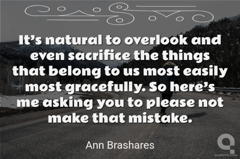 It’s natural to overlook and even sacrifice the things that belong to us most easily most gracefully. So here’s me asking you to please not make that mistake.
