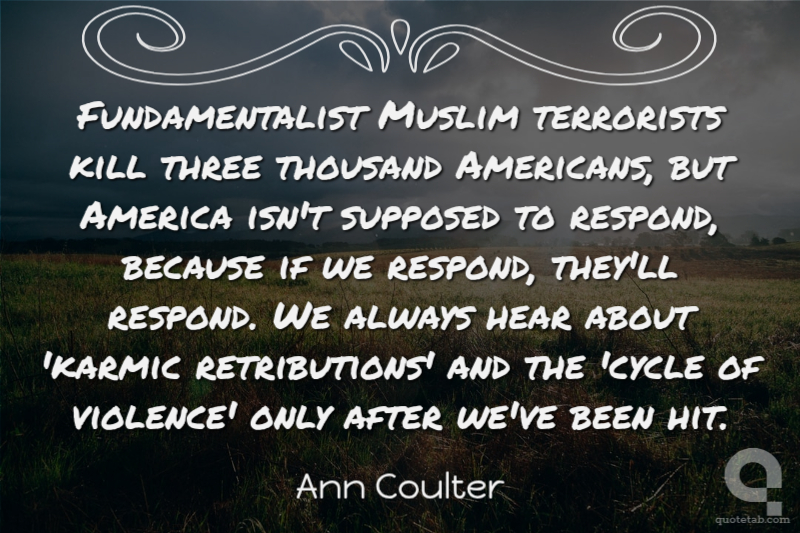 Fundamentalist Muslim terrorists kill three thousand Americans, but America isn't supposed to respond, because if we respond, they'll respond. We always hear about 'karmic retributions' and the 'cycle of violence' only after we've been hit.