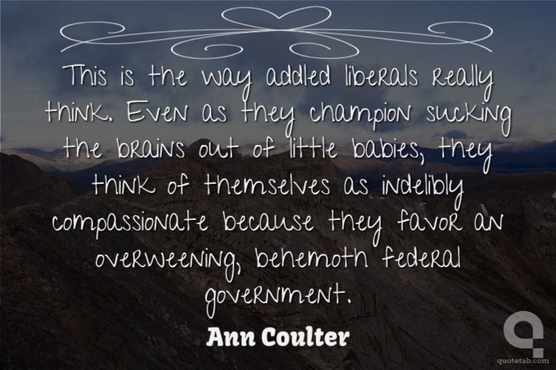 This is the way addled liberals really think. Even as they champion sucking the brains out of little babies, they think of themselves as indelibly compassionate because they favor an overweening, behemoth federal government.