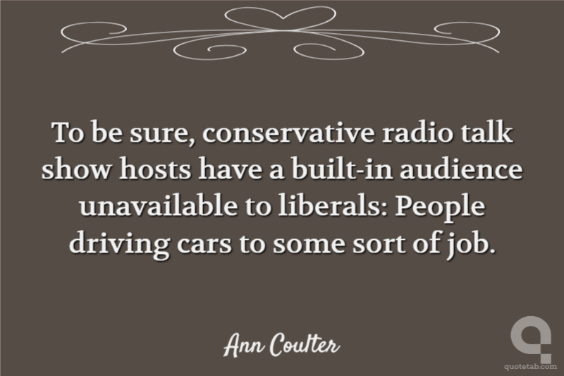To be sure, conservative radio talk show hosts have a built-in audience unavailable to liberals: People driving cars to some sort of job.