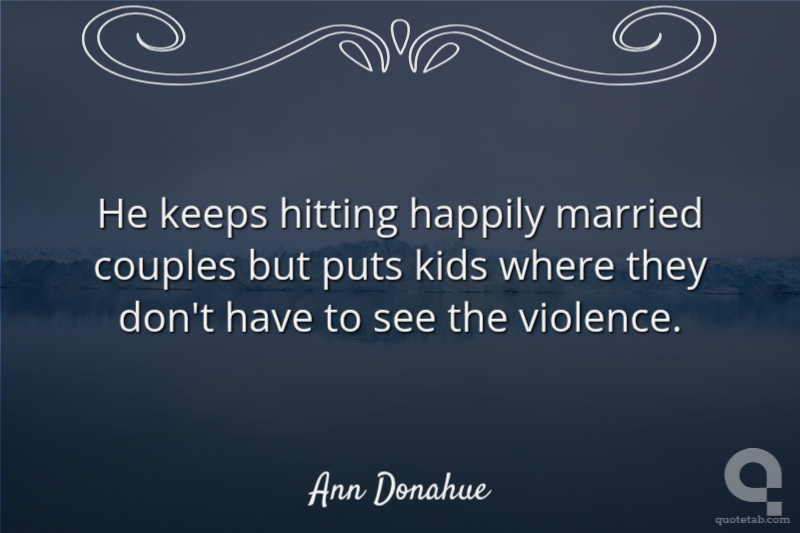 He keeps hitting happily married couples but puts kids where they don't have to see the violence.