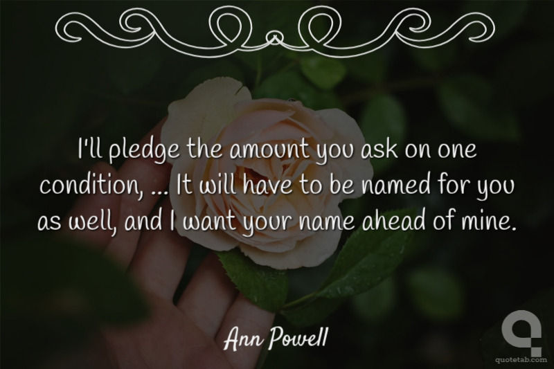 I'll pledge the amount you ask on one condition, ... It will have to be named for you as well, and I want your name ahead of mine.