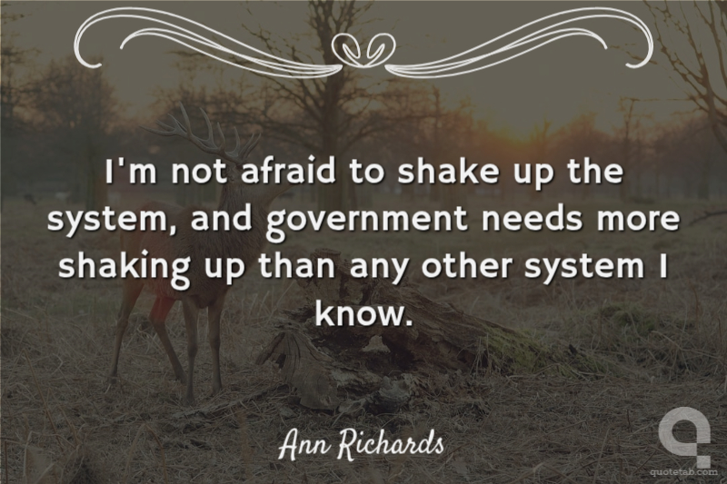 I'm not afraid to shake up the system, and government needs more shaking up than any other system I know.