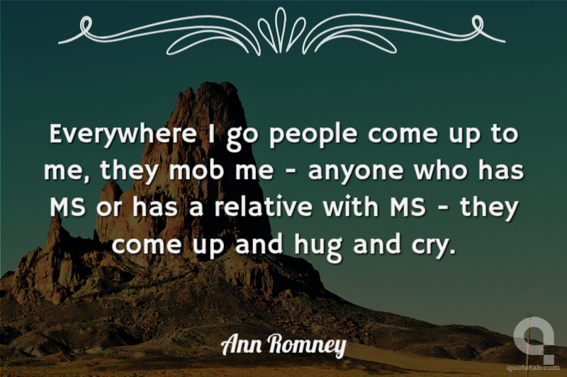 Everywhere I go people come up to me, they mob me - anyone who has MS or has a relative with MS - they come up and hug and cry.