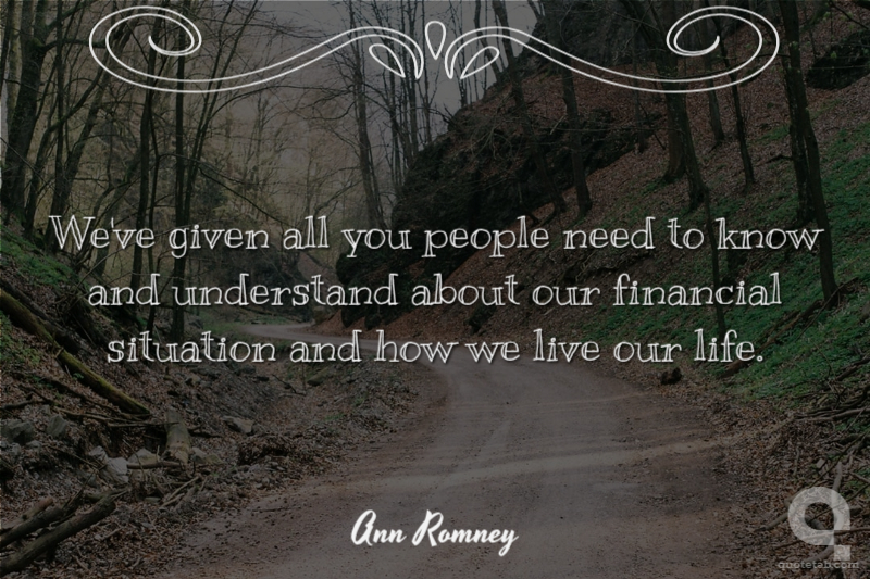 You know, you should really look at where Mitt has led his life, and where he's been financially. He's a very generous person. We give 10 percent of our income to our church every year. Do you think that is the kind of person that is trying to hide things, or do things? No.