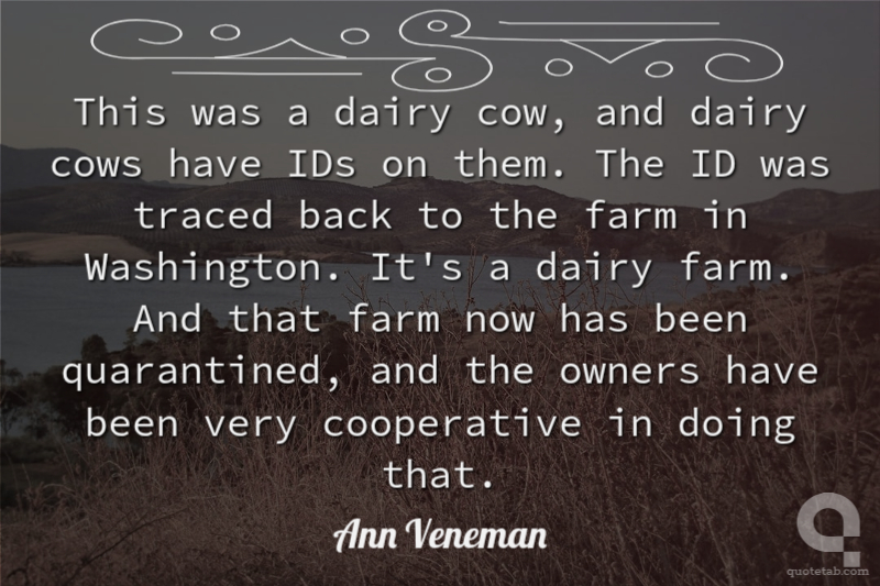 This was a dairy cow, and dairy cows have IDs on them. The ID was traced back to the farm in Washington. It's a dairy farm. And that farm now has been quarantined, and the owners have been very cooperative in doing that.