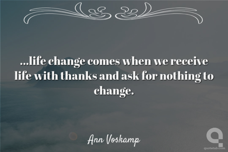...life change comes when we receive life with thanks and ask for nothing to change.
