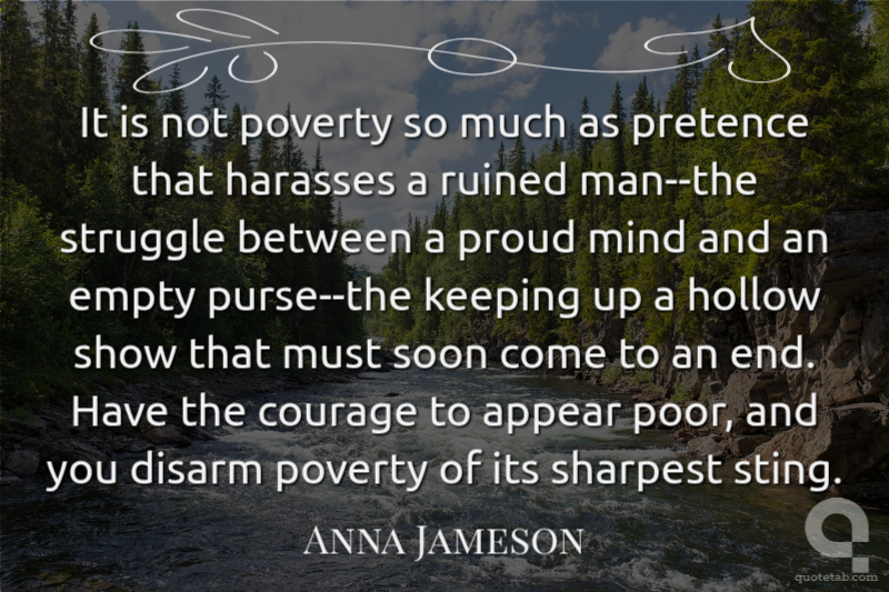 It is not poverty so much as pretence that harasses a ruined man--the struggle between a proud mind and an empty purse--the keeping up a hollow show that must soon come to an end. Have the courage to appear poor, and you disarm poverty of its sharpest sting.
