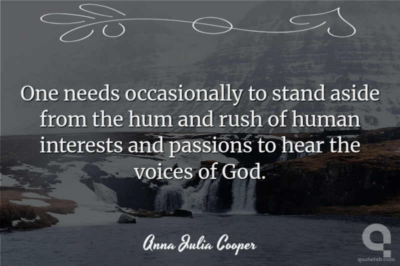 One needs occasionally to stand aside from the hum and rush of human interests and passions to hear the voices of God.