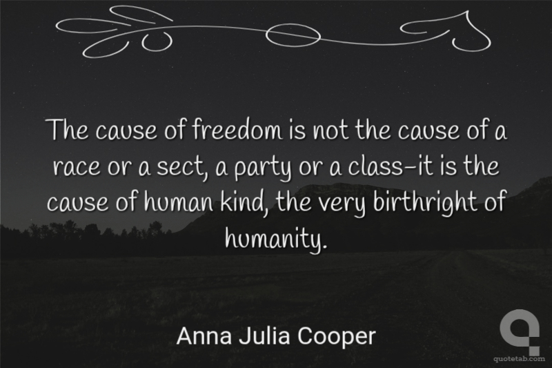 The cause of freedom is not the cause of a race or a sect, a party or a class-it is the cause of human kind, the very birthright of humanity.