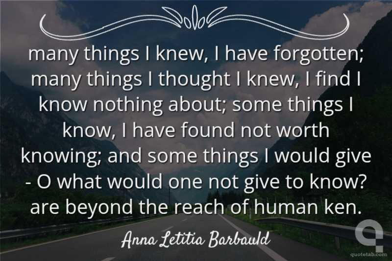 many things I knew, I have forgotten; many things I thought I knew, I find I know nothing about; some things I know, I have found not worth knowing; and some things I would give - O what would one not give to know? are beyond the reach of human ken.
