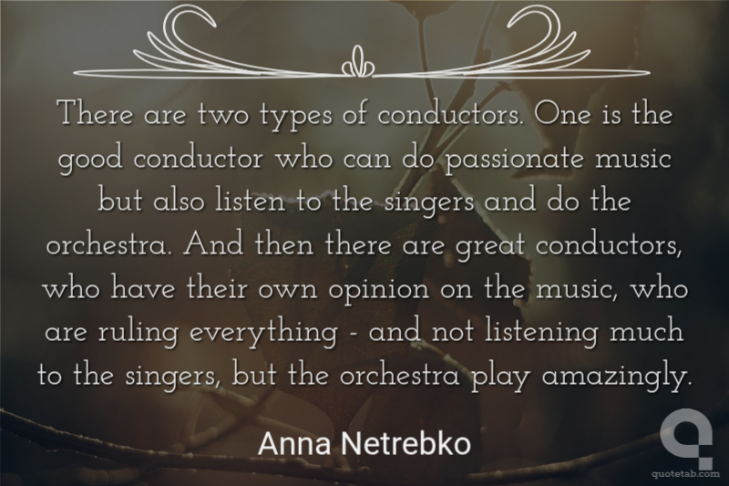 There are two types of conductors. One is the good conductor who can do passionate music but also listen to the singers and do the orchestra. And then there are great conductors, who have their own opinion on the music, who are ruling everything - and not listening much to the singers, but the orchestra play amazingly.