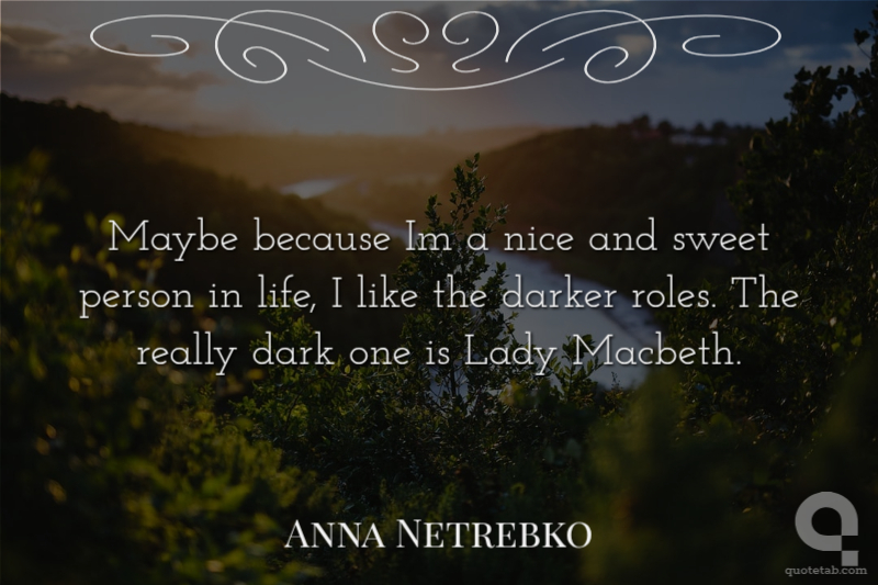 Maybe because Im a nice and sweet person in life, I like the darker roles. The really dark one is Lady Macbeth.