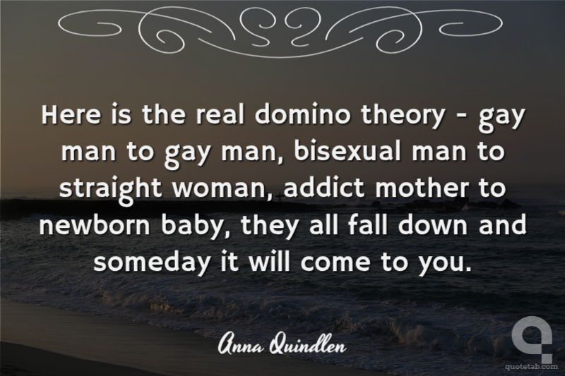 Here is the real domino theory - gay man to gay man, bisexual man to straight woman, addict mother to newborn baby, they all fall down and someday it will come to you.