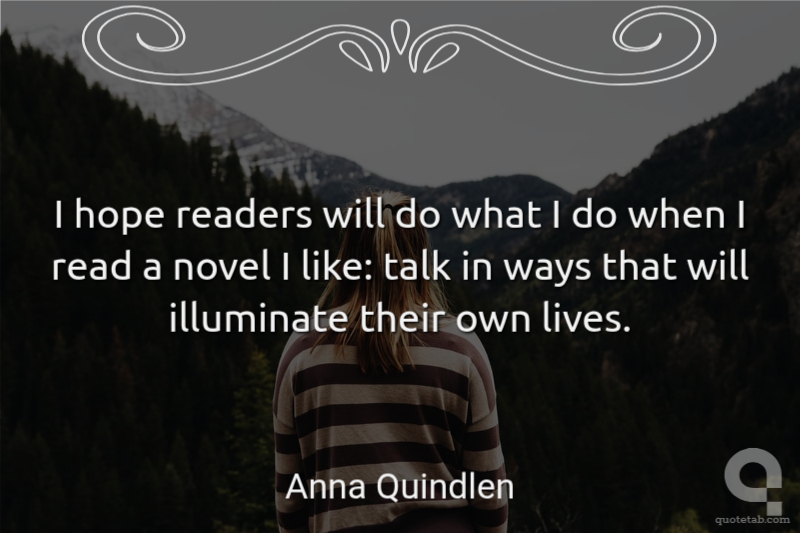I hope readers will do what I do when I read a novel I like: talk in ways that will illuminate their own lives.