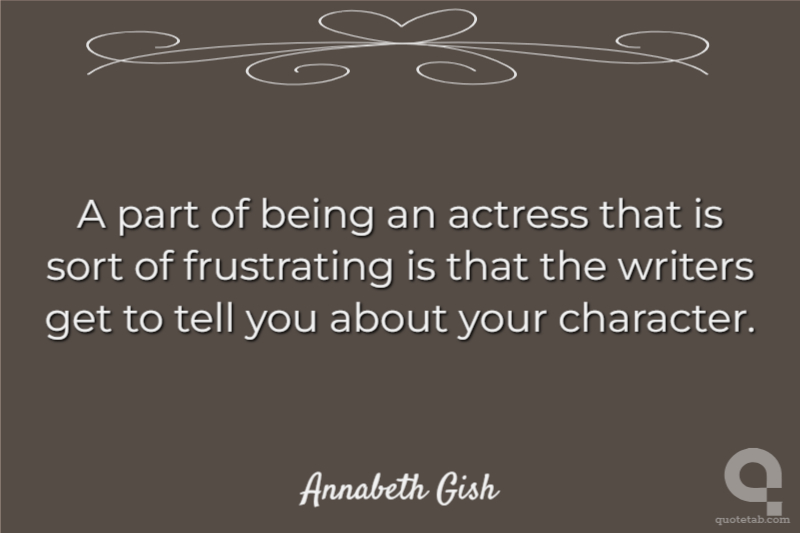 A part of being an actress that is sort of frustrating is that the writers get to tell you about your character.