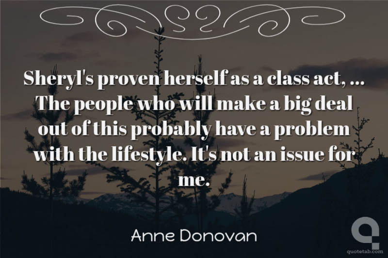 Sheryl's proven herself as a class act, ... The people who will make a big deal out of this probably have a problem with the lifestyle. It's not an issue for me.
