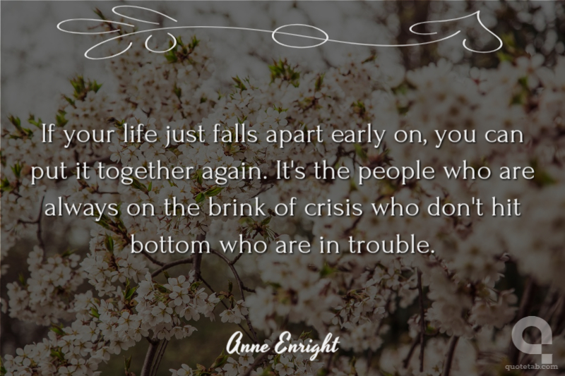 If your life just falls apart early on, you can put it together again. Its the people who are always on the brink of crisis who dont hit bottom who are in trouble.
