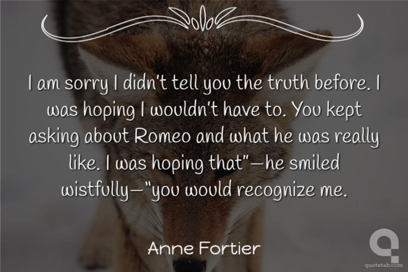 I am sorry I didn’t tell you the truth before. I was hoping I wouldn’t have to. You kept asking about Romeo and what he was really like. I was hoping that”—he smiled wistfully—“you would recognize me.