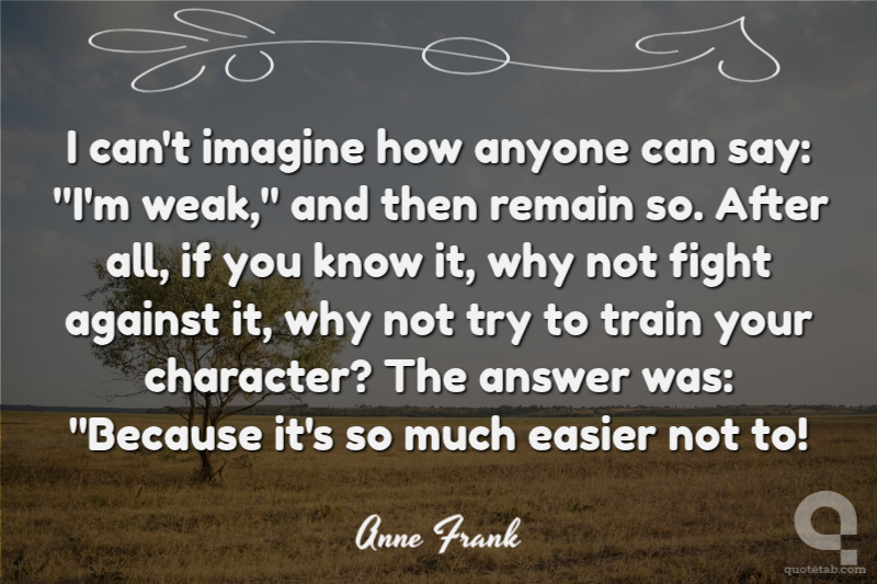 I can't imagine how anyone can say: "I'm weak," and then remain so. After all, if you know it, why not fight against it, why not try to train your character? The answer was: "Because it's so much easier not to!