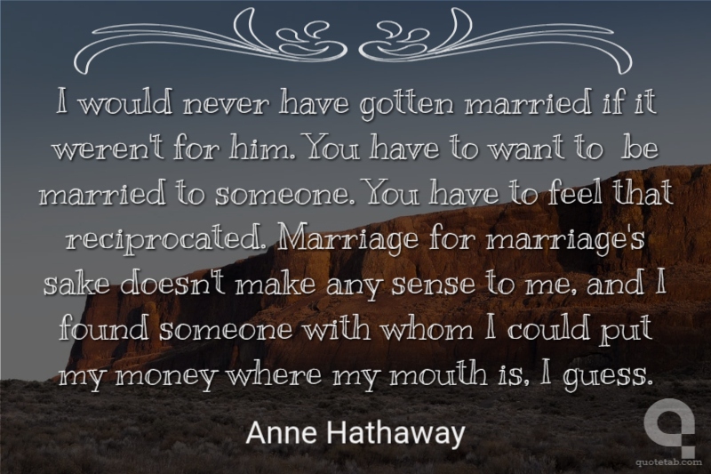 I would never have gotten married if it weren't for him. You have to want to be married to someone. You have to feel that reciprocated. Marriage for marriage's sake doesn't make any sense to me, and I found someone with whom I could put my money where my mouth is, I guess.