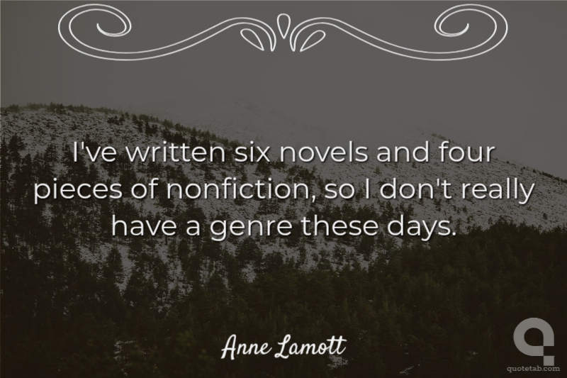 I've written six novels and four pieces of nonfiction, so I don't really have a genre these days.