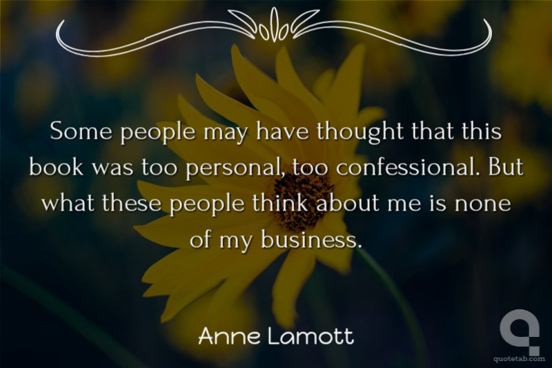Some people may have thought that this book was too personal, too confessional. But what these people think about me is none of my business.