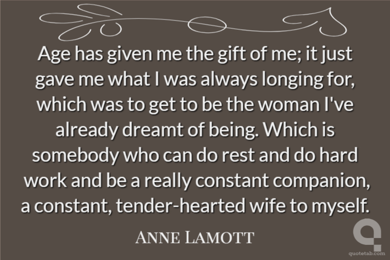 Age has given me the gift of me; it just gave me what I was always longing for, which was to get to be the woman I've already dreamt of being. Which is somebody who can do rest and do hard work and be a really constant companion, a constant, tender-hearted wife to myself.