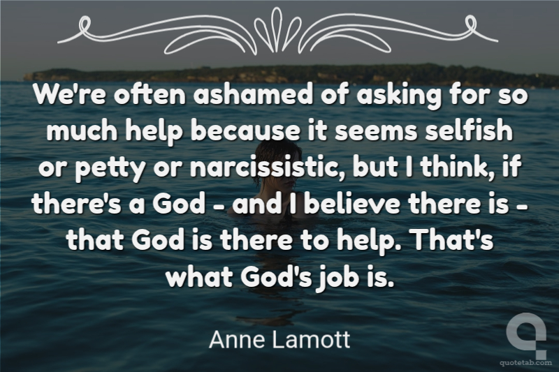 We're often ashamed of asking for so much help because it seems selfish or petty or narcissistic, but I think, if there's a God - and I believe there is - that God is there to help. That's what God's job is.
