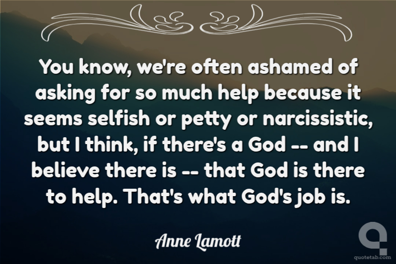 You know, we're often ashamed of asking for so much help because it seems selfish or petty or narcissistic, but I think, if there's a God -- and I believe there is -- that God is there to help. That's what God's job is.