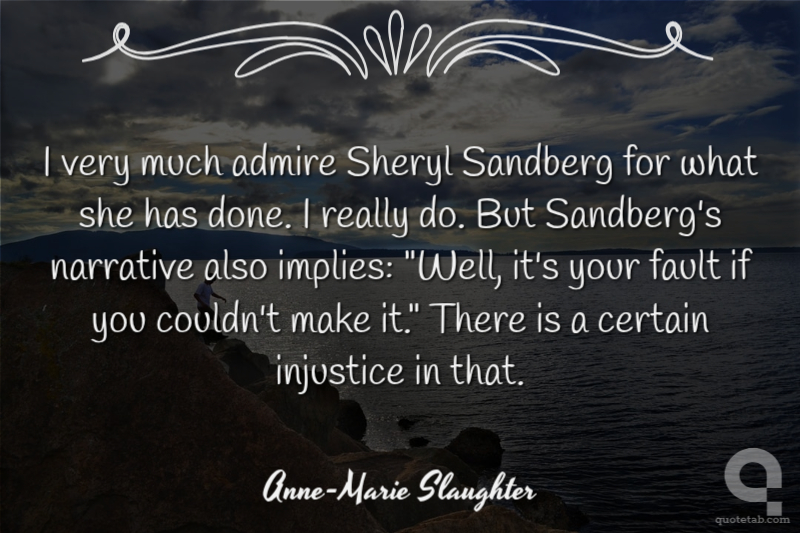 I very much admire Sheryl Sandberg for what she has done. I really do. But Sandberg's narrative also implies: "Well, it's your fault if you couldn't make it." There is a certain injustice in that.