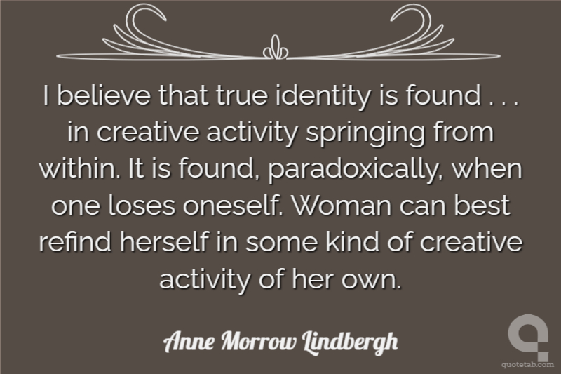 I believe that true identity is found . . . in creative activity springing from within. It is found, paradoxically, when one loses oneself. Woman can best refind herself in some kind of creative activity of her own.