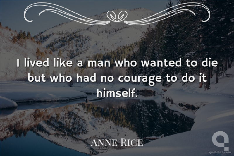 I lived like a man who wanted to die but who had no courage to do it himself.