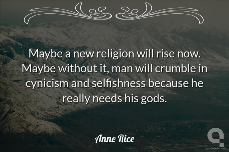 Maybe a new religion will rise now. Maybe without it, man will crumble in cynicism and selfishness because he really needs his gods.