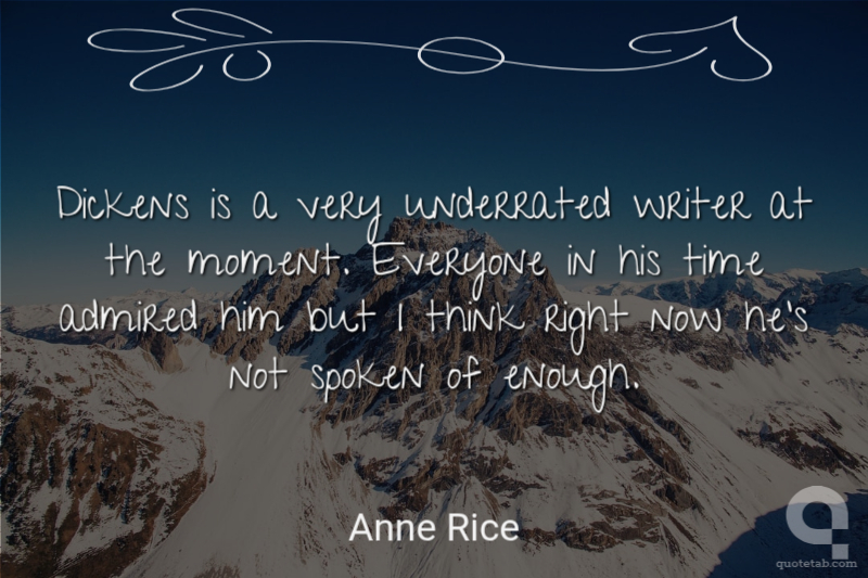 Dickens is a very underrated writer at the moment. Everyone in his time admired him but I think right now he's not spoken of enough.