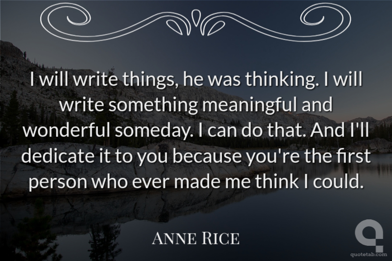 I will write things, he was thinking. I will write something meaningful and wonderful someday. I can do that. And I'll dedicate it to you because you're the first person who ever made me think I could.