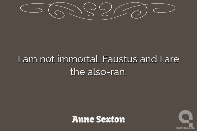 I am not immortal. Faustus and I are the also-ran.
