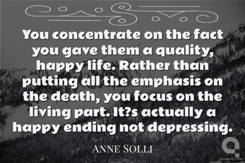You concentrate on the fact you gave them a quality, happy life. Rather than putting all the emphasis on the death, you focus on the living part. It?s actually a happy ending not depressing.