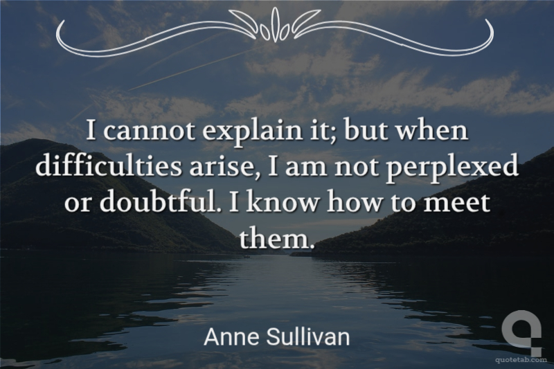 I cannot explain it; but when difficulties arise, I am not perplexed or doubtful. I know how to meet them.