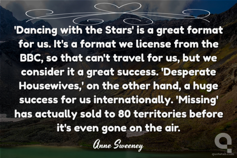 'Dancing with the Stars' is a great format for us. It's a format we license from the BBC, so that can't travel for us, but we consider it a great success. 'Desperate Housewives,' on the other hand, a huge success for us internationally. 'Missing' has actually sold to 80 territories before it's even gone on the air.